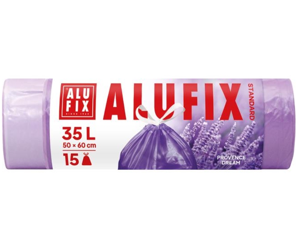 35 litrové ALUFIX HDPE vrecia na odpad zaväzovacie s vôňou levandule fialové /15ks