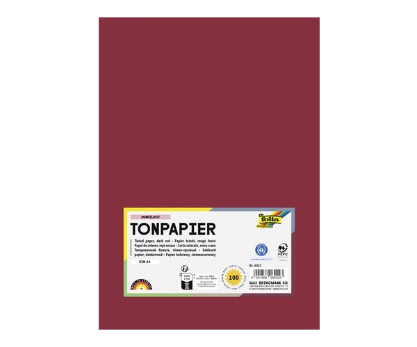FOLIA farebný papier A4 130g tmavočervený / 100 hárkov