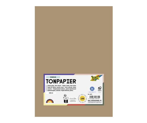 FOLIA farebný papier A4 130g prírodný hnedý / 100 hárkov