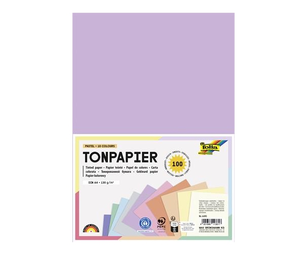 FOLIA farebný papier A4 130g 10 x 10 pastelových farieb / 100 hárkov