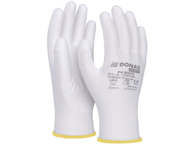DONAU SAFETY PU kat. II rukavice pletené, polomáčané biele / 12 párov