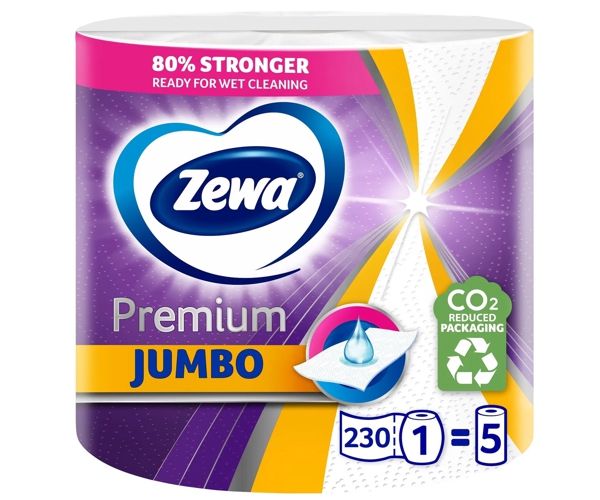 ZEWA Premium Jumbo papierové utierky kotúčové 3-vrstvové, 230 útržkov x 6 kotúčov