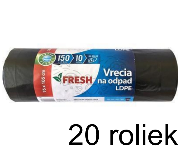 FRESH vrecia na odpad 150 l – obyčajné, 10 ks - 20 roliek - celá krabica