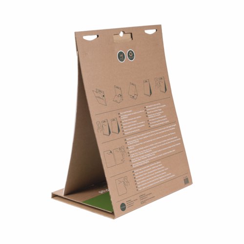 tabletop flipchart pad, self standing flipchart, repositionable adhesive sheets, recycled 80 gsm paper, perforated top, bleed proof paper, brainstorming pad, meeting notes pad, presentation paper, eco friendly flipchart, Bi-Office Earth, standard punched holes, no easel required