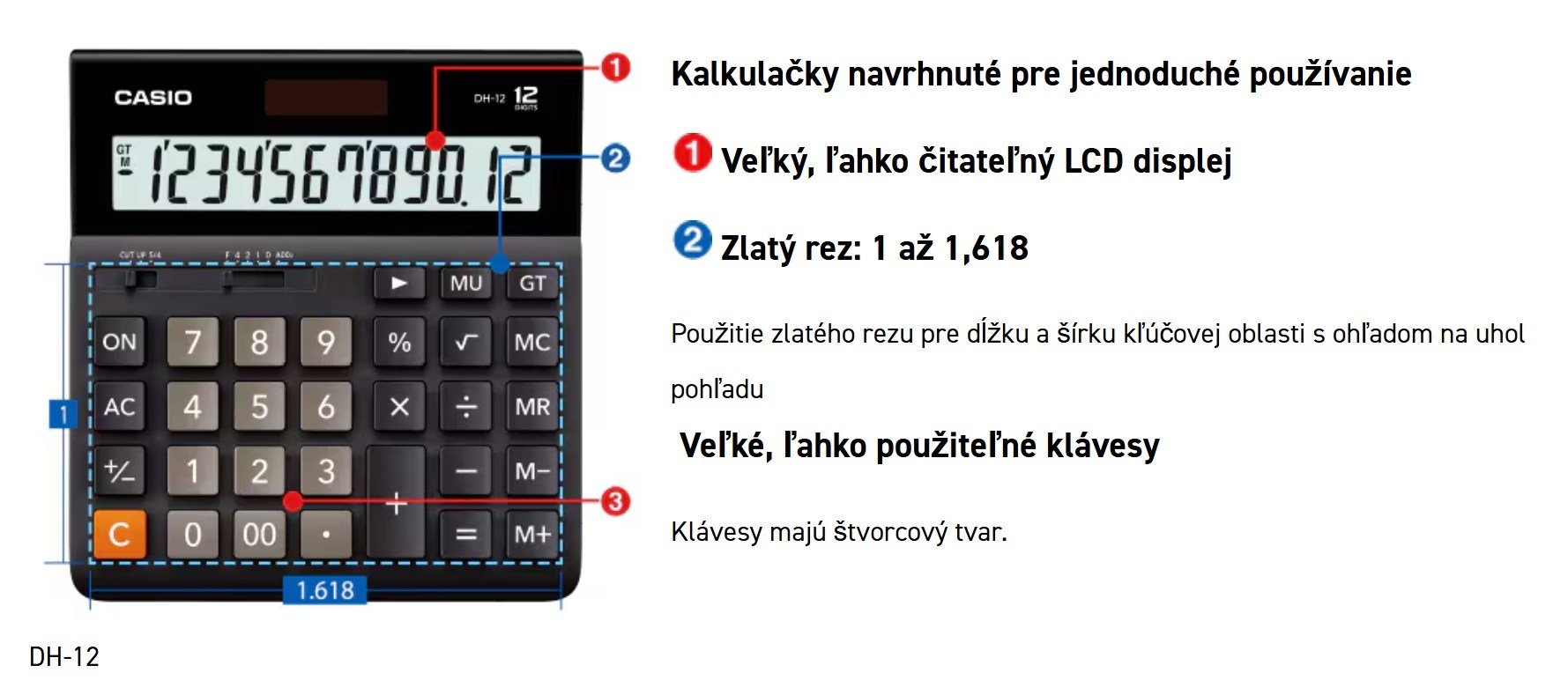 Stolová kalkulačka s extra veľkým 12-miestnym LCD displejom a plastovými tlačidlami. Obsahuje pomocné tlačidlá na spätné mazanie zadaných čísel a výpočet daní.