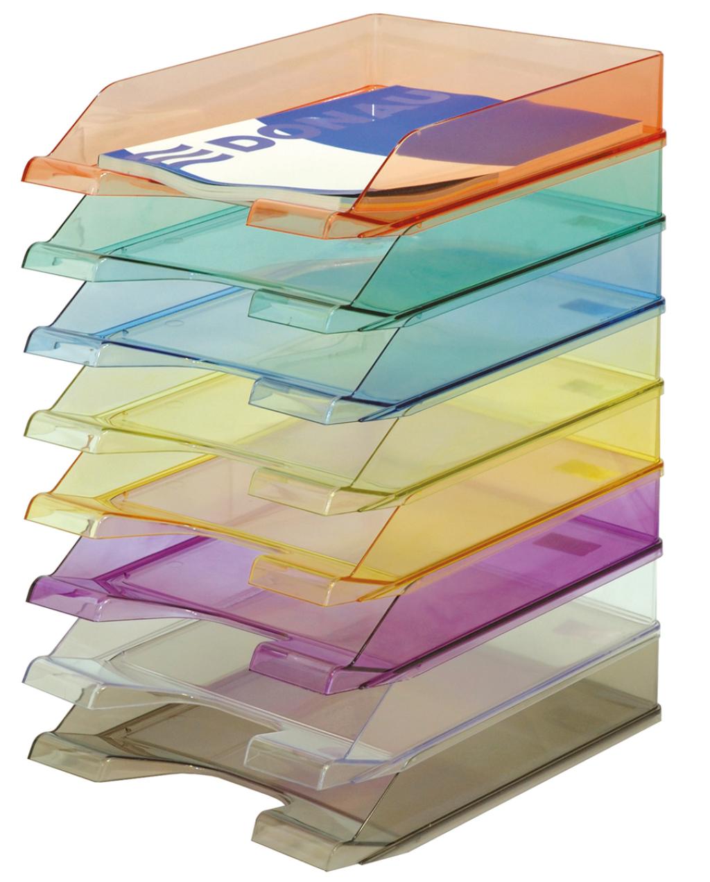 DONAU plastic document tray, transparent blue letter tray A4, office paper organizer, durable and stackable file holder for desk.
