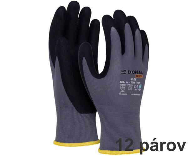 DONAU SAFETY Flex rukavice pletené, polomáčané / 12 párov
