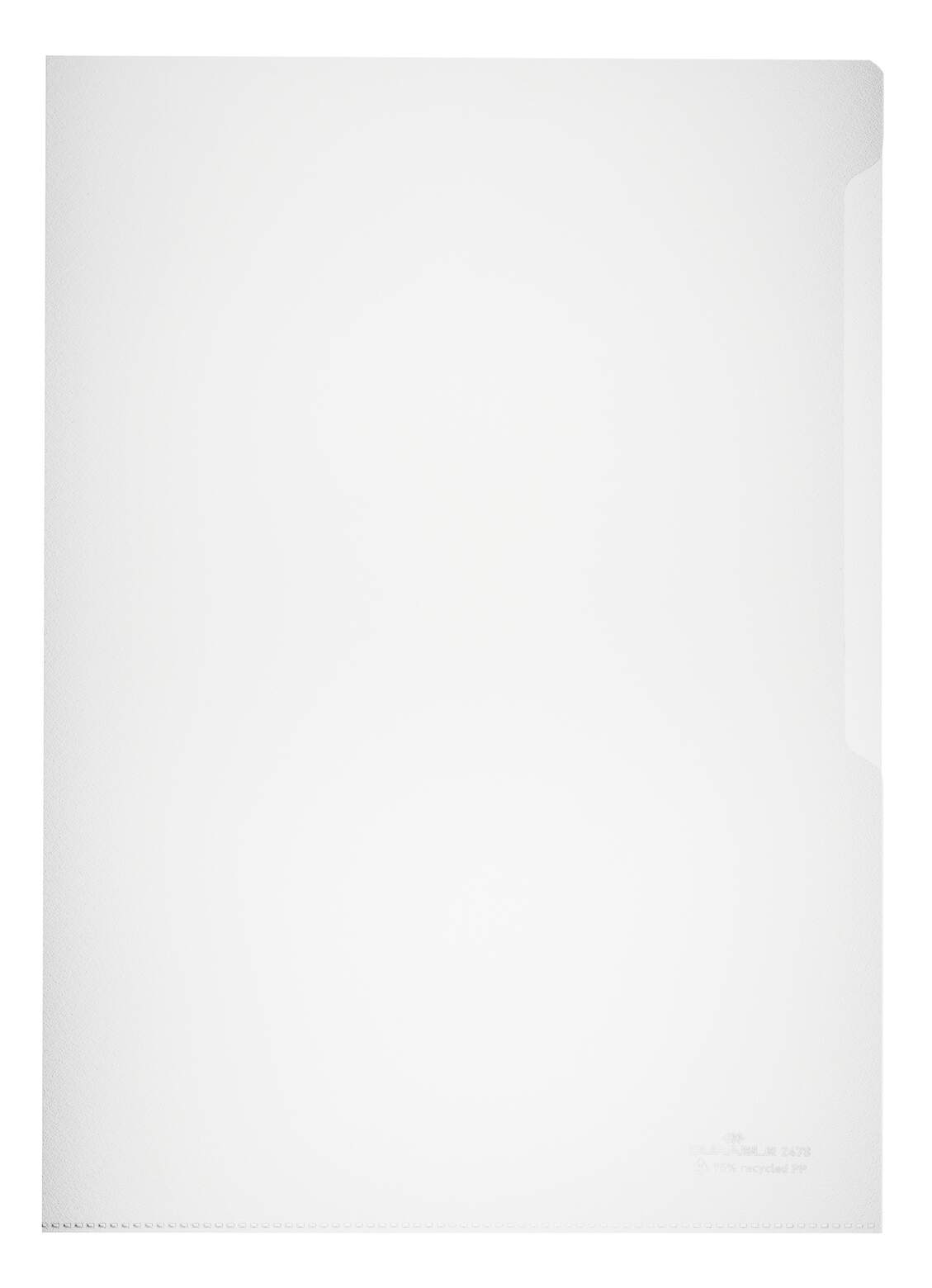 Obal L STANDARD A4 z recyklovaného plastu (rPP), 100 mikrónov, transparentný, s výrezom na uchopenie. Otvorený zhora a zboku, vhodný na každodenné použitie a archiváciu. Ekologické balenie 100 kusov vhodné pre kancelárie a školy.
