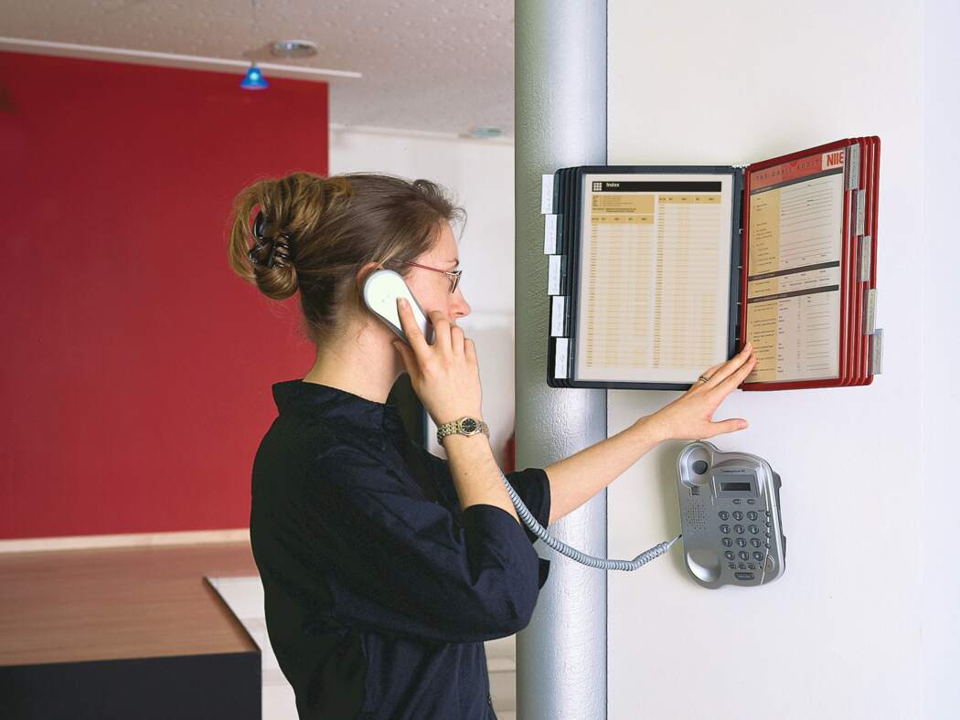 Nástenný držiak so sadou 10 zobrazovacích panelov SHERPA® vo formáte A4.