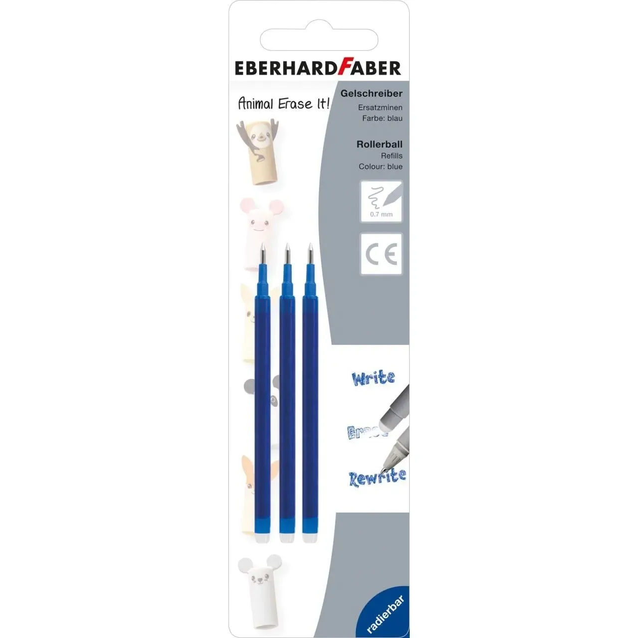 Náplň pre zmazateľné rollery Animal Erase it! - ideálne do školy, univerzity alebo kancelárie - gélový atrament - hrúbka písma: 0,7 mm - s plastovým hrotom na konci tela pera je možné písanie ľahko zmazať v dôsledku vznikajúceho trenia