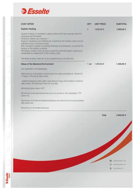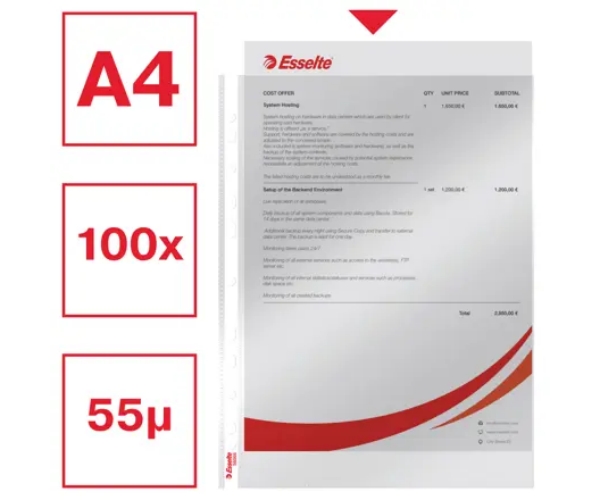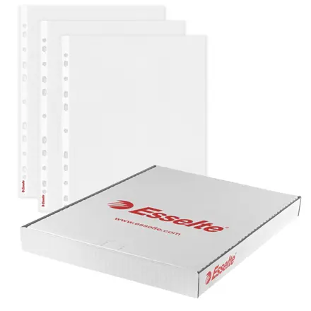 Kvalitné plastové závesné obaly Esselte Standard sú ideálne pre každodenné použitie a bežnú archiváciu dokumentov v pákových a krúžkových zoraďovačoch. Vyrobené z hladkej recyklovateľnej PP fólie hrúbky 0,055 mm (Copysafe), poskytujú spoľahlivú ochranu a jednoduchú manipuláciu.