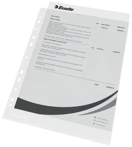 Cenovo výhodné riešenie na každodenné zakladanie a archiváciu dokumentov vo formáte A4 – ekonomický euroobal s embosovaným povrchom a univerzálnym 11-dierovým perforovaním je ideálny pre použitie v pákových a krúžkových zoraďovačoch. Zabezpečuje jednoduchú manipuláciu, ochranu pred poškodením a priehľadnosť vďaka ľadovej fólii.