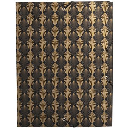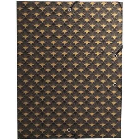 Zatváranie: 3 chlopne + pevné gumičky čiernej a zlatej farby