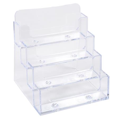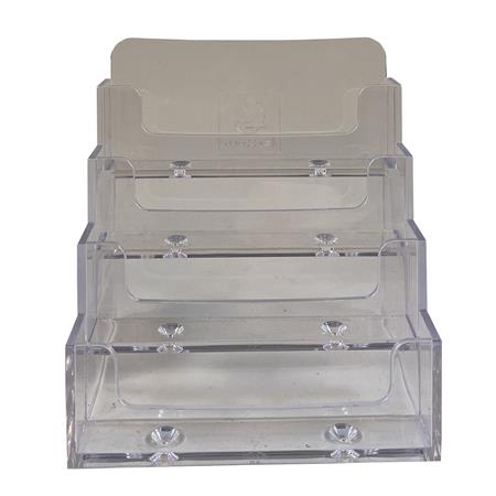 Exacompta Office držiak na vizitky, stolový stojan na vizitky, priehľadný polystyrén, 4 priehradky, kapacita 200 vizitiek, monoblok, bez montáže, kancelárske doplnky, stojan na vizitky