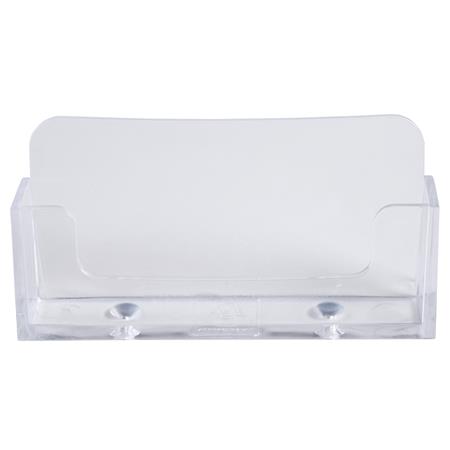 stojan na vizitky Exacompta priehľadný, 1 priehradka na 50 vizitiek, prezentér na vizitky na stôl, číry plastový držiak na vizitky, Exacompta Office, PS plast, 34x102x47 mm, stojanček na vizitky