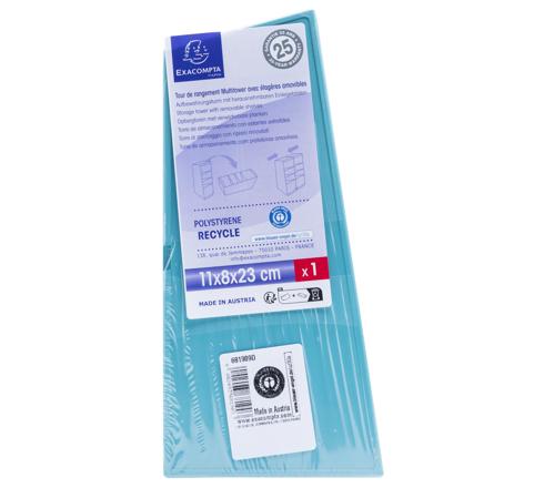 Organizér Multi Tower má 4 priehradky rôznej hĺbky (8 až 11 cm), ideálne na odkladanie pier, zvýrazňovačov, nožníc, lístkov Post-it, mobilného telefónu či iných drobných kancelárskych potrieb. Vďaka kompaktným rozmerom (výška 23 cm, šírka 8 cm, hĺbka 11 cm) sa zmestí na stôl aj poličku. Možno ho používať na výšku aj na šírku a vďaka priloženým klipom je možné spojiť viac kusov pre väčšiu kapacitu.