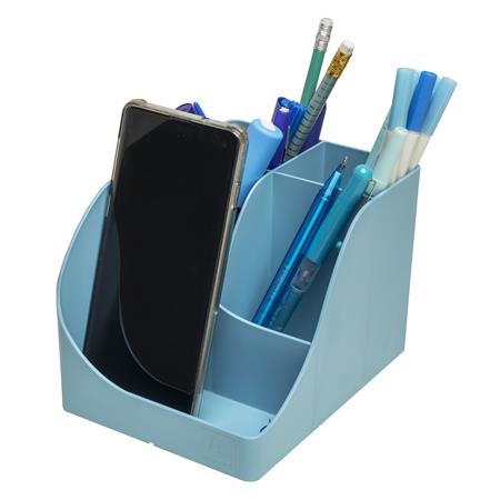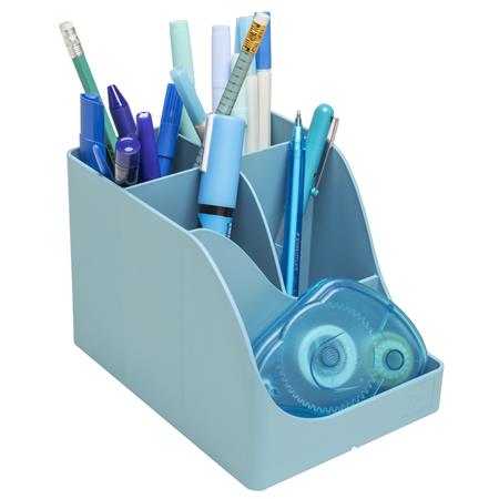 Pen Wave z kolekcie Pop’N Co od značky Exacompta vnáša sviežosť, farbu a ekológiu do každého pracovného priestoru. Vďaka žiarivej cyanovej farbe podporuje kreativitu a zlepšuje náladu v kancelárii aj doma. Vyrobený z recyklovaného plastu z domácich odpadov, tento stabilný a priestranný stojan nesie prestížny ekologický certifikát Modrý anjel.