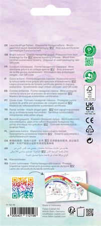 Šesťhranné telo ceruziek v základných aj neónových farbách zabezpečuje pohodlný úchop a žiarivé farby zaručujú výrazný výsledok pri kreslení. Ceruzky majú maximálnu odolnosť proti lámaniu vďaka bezpečnému lepiacemu procesu (SV). Drevo pochádza z certifikovaného udržateľného lesného hospodárstva.