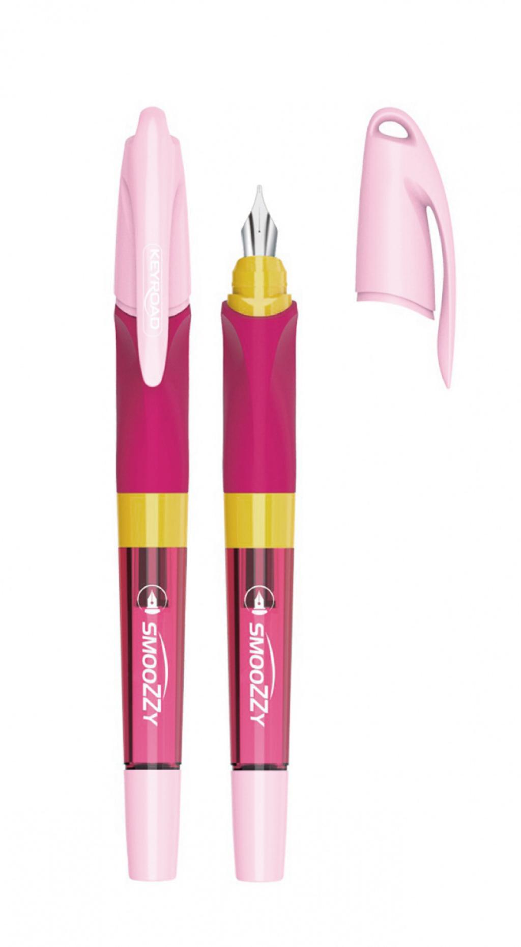 Písacie plniace pero KEYROAD Smozzy, ideálne na učenie písania v škole aj doma. Má ergonomický, pogumovaný profil rukoväte, vhodné pre pravákov aj ľavákov. Vysoko kvalitný hrot z nehrdzavejúcej ocele hrúbka čiary písania: 0,7 mm. Umývateľný modrý atrament. Balenie: blister. Farba: mix farieb.