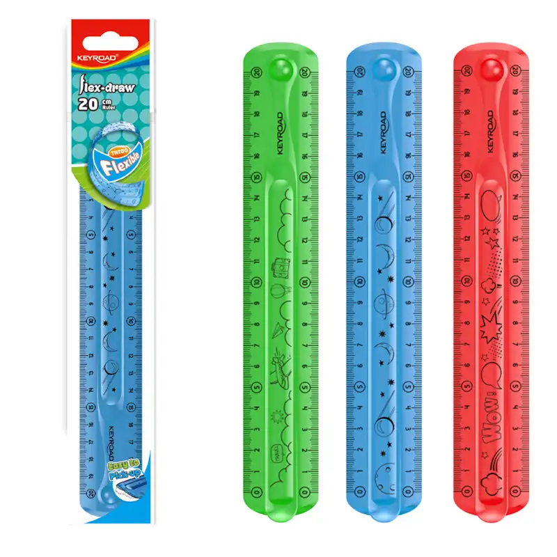 Ohybné pravítko KEYROAD 20 cm je kvalitné transparentné pravítko vyrobené z odolného polyméru, ktorý zaručuje vysokú flexibilitu a dlhú životnosť. Vďaka prelisovanému telu sa s ním jednoducho manipuluje a poskytuje presné meranie bez rizika zlomenia. Dodávané v mixe troch atraktívnych farieb.