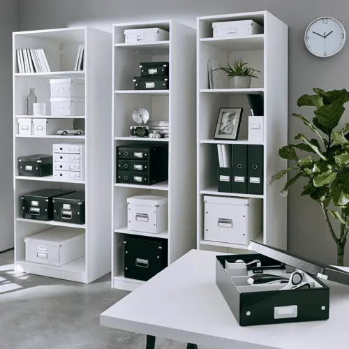 Elegantný a praktický organizér pre usporiadanie A5 dokumentov, fotiek a ďalších drobností. Box je vyrobený z pevného kartónu s podielom 84 % recyklovaného materiálu a s laminovaným povrchom pre dlhšiu životnosť a čistú údržbu. Vnútorné členenie umožňuje flexibilné usporiadanie vecí – možné rozdeliť na 2 alebo 3 priehradky. Box sa dá zložiť, čím šetrí miesto, keď nie je v použití.