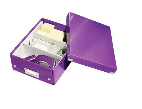 Leitz Click & Store WOW Small Organiser Box je ideálnym riešením na usporiadanie a skladovanie káblov, drobnej elektroniky, kancelárskych potrieb, CD/DVD médií či fotografií. Tento štýlový box je dostupný vo viacerých žiarivých farbách zo série WOW a perfektne sa hodí do každého moderného interiéru doma aj v práci.