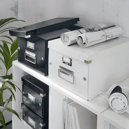 Elegantná a odolná škatuľa Leitz WOW je ideálnym riešením pre každého, kto hľadá štýlové a funkčné úložné riešenie na DVD a drobnosti.