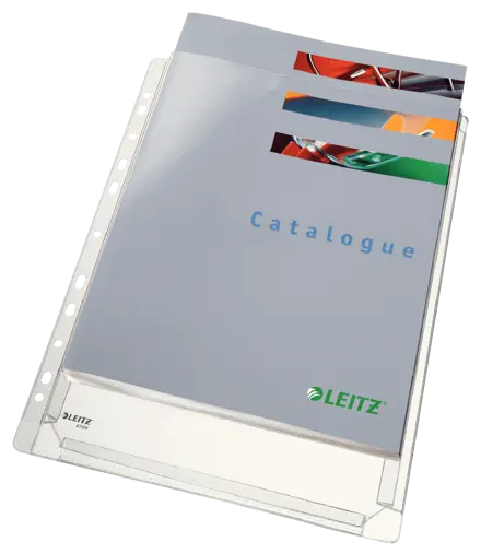 Závesné plastové obaly Leitz s rozšíriteľnou kapacitou sú ideálnym riešením pre zakladanie katalógov, cenníkov alebo objemnejších dokumentov. Spodný a bočný klin so šírkou 20 mm umožňuje flexibilné rozšírenie obalu a pojme až 200 listov formátu A4.