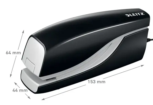 SEO EN: Leitz contactless electric stapler, no-touch stapler, hygienic stapling, 10 sheet electric stapler, E1 staples included, jam-free stapling, mains powered stapler, fast stapling, diagonal stapling, GS certified, 3 year warranty, compact desktop electric stapler