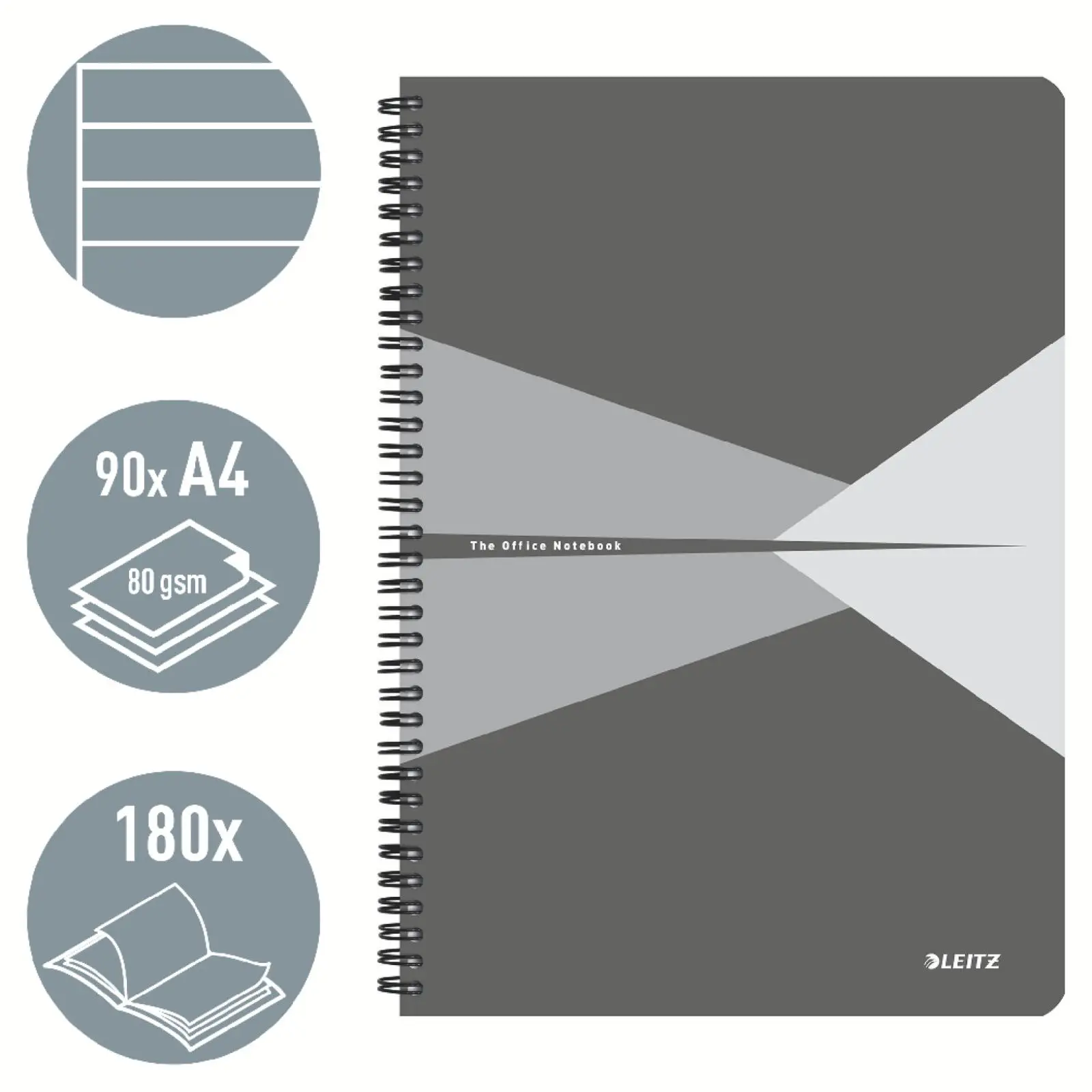 Blok obsahuje 90 listov (180 strán) papiera najvyššej kvality s gramážou 80 g/m². Drôtená (špirálová) väzba umožňuje úplné 360° otvorenie a po prehnutí na polovicu môže blok slúžiť aj ako pevná podložka na písanie. Laminované kartónové dosky sú ľahké, pružné a zároveň odolné voči každodennému opotrebovaniu.