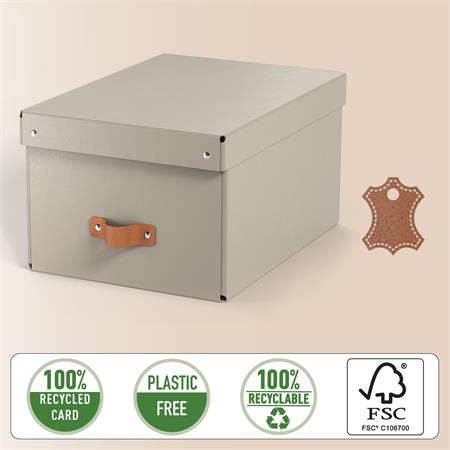 Balenie obsahuje 2 stredne veľké úložné boxy s vekom z 100 % recyklovaného kartónu (FSC® certifikát)