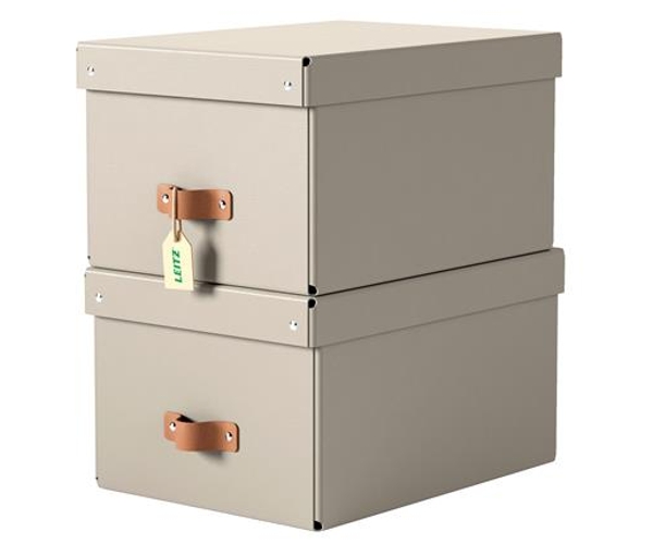 Každý zakladač má koženú rukoväť pre jednoduché vyberanie z políc a úložných priestorov. Vyrobené v Taliansku z kvalitného kartónu, ktorý zabezpečuje, že zakladače ostanú vzpriamené aj keď sú plné. Tieto zakladače sú ideálnym doplnkom do domácnosti alebo kancelárie na vytvorenie prehľadného, estetického a produktívneho priestoru. FEEL GOOD with Leitz.