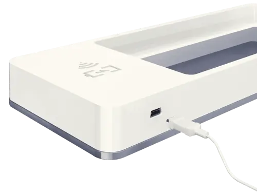 Súčasťou je indukčný nabíjač (Qi) , ktorý umožňuje nabíjanie smartfónu bez káblov – ideálny doplnok k ostatným produktom z kolekcie Leitz WOW.