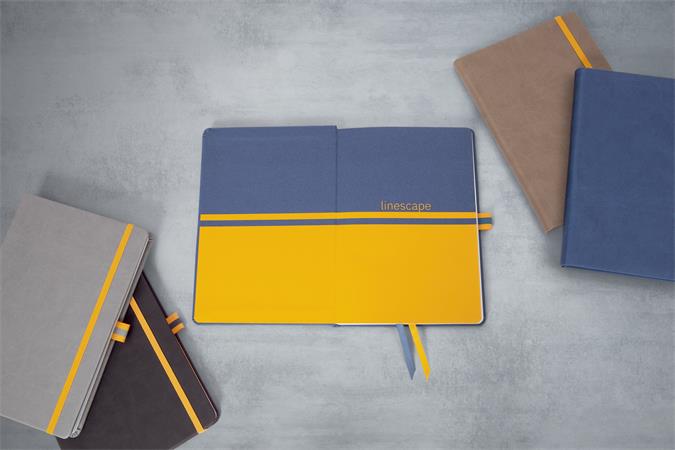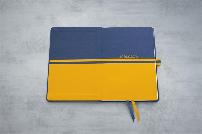Moderný zápisník zo série Linescape v modro-žltej kombinácii je ideálny na pracovné stretnutia aj osobné poznámky. Obal z mäkkého PU materiálu pôsobí profesionálne a elegantne, zatiaľ čo kontrastné prvky v horčicovo žltej farbe – vrátane gumičky, pútka na pero, záložiek a predsádok – dodávajú zápisníku výrazný vizuálny prvok. FSC® certifikovaný papier a kvalitná šitá väzba zaručujú dlhú životnosť. Celý výrobok je vegánsky.