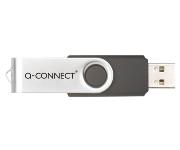 USB kľúč Q-Connect 16 GB – USB 2.0, čierno-strieborný, s otočným krytom
