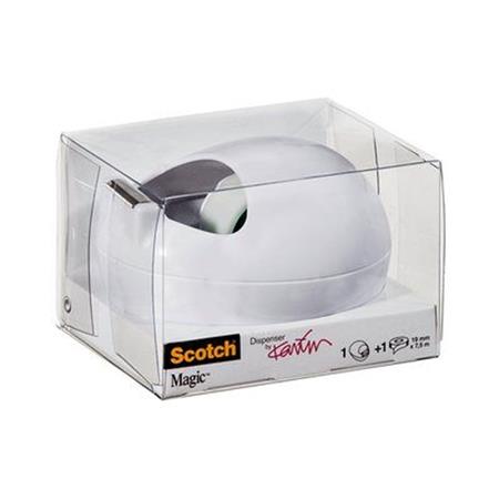 Scotch C36-W-EU dispenzor na lepiacu pásku, stolový, biely, tvar kameň, s páskou Scotch Magic 810™, 19 mm × 7,5 m, kancelárske potreby, dizajnový držiak na pásku, stabilný protišmykový stojan.