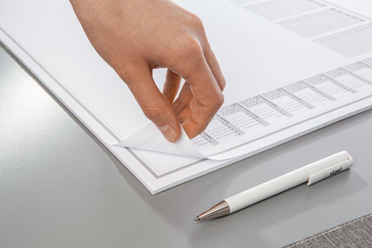 SIGEL HO580 paper desk pad, Adult Coloring, approx A2, desk writing pad, 20 sheets, 80 gsm, calendar, tear-off notepad, top and bottom glued, slip-proof cardboard backing, protects desk, suitable for all mouse types, FSC Mix Credit, office supplies, olhaoffice