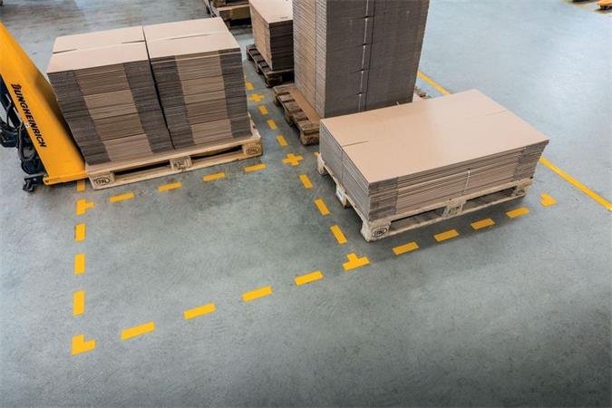 Registrované bezpečnostné označovanie na identifi káciu nebezpečných oblastí, skladovacích priestorov, chodníkov a pod. Odolnosť proti skĺznutiu R9 podľa DIN 51130 v súlade s ISO 7010. Samolepiace značky na bezpečnostné označenie pre vnútorné použitie v skladoch, distribučných centrách, výrobných závodov a i. Odolné voči oderu a ťažkej záťaži. Podlahové značenie - tvary, farba signálna žltá RAL 1003. Hrúbka 0,7 mm. Rozmery 100 × 100 mm. Balenie 10 kusov.