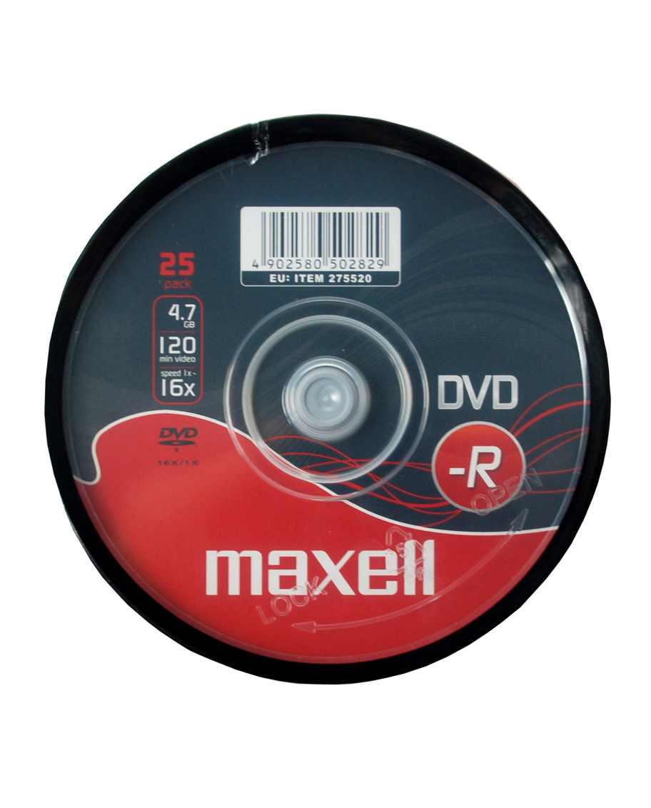 Maxell DVD-R 4,7GB 16× 25 ks cake box – zapisovateľné disky vhodné na dlhodobú archiváciu dát, kompatibilné s väčšinou DVD rekordérov a prehrávačov. |