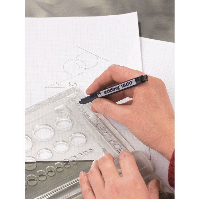 Na kreatívne aktivity sú niekedy potrebné mimoriadne presné perá – či už na skicovanie, obkresľovanie Zen-Tangle vzorov alebo mandál, prípadne na prácu so šablónami. Jedným z takýchto nástrojov je edding 1880 drawliner. Jeho veľmi jemný hrot je spevnený kovovým rámom, čo zaručuje špičkovú presnosť.