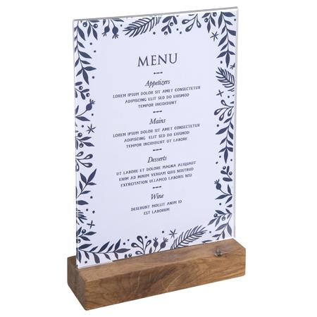 Exacompta A5 display stand, acrylic document holder with oak base, photo stand, leaflet holder, menu stand, clear acrylic display, table document presenter, office supplies, brochure holder, vertical display stand.