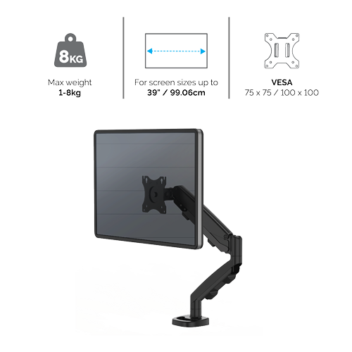 BOZP podľa normy EN ISO 9241-5. Je určené pre jeden monitor s hmotnosťou od 1 do 8 kg a