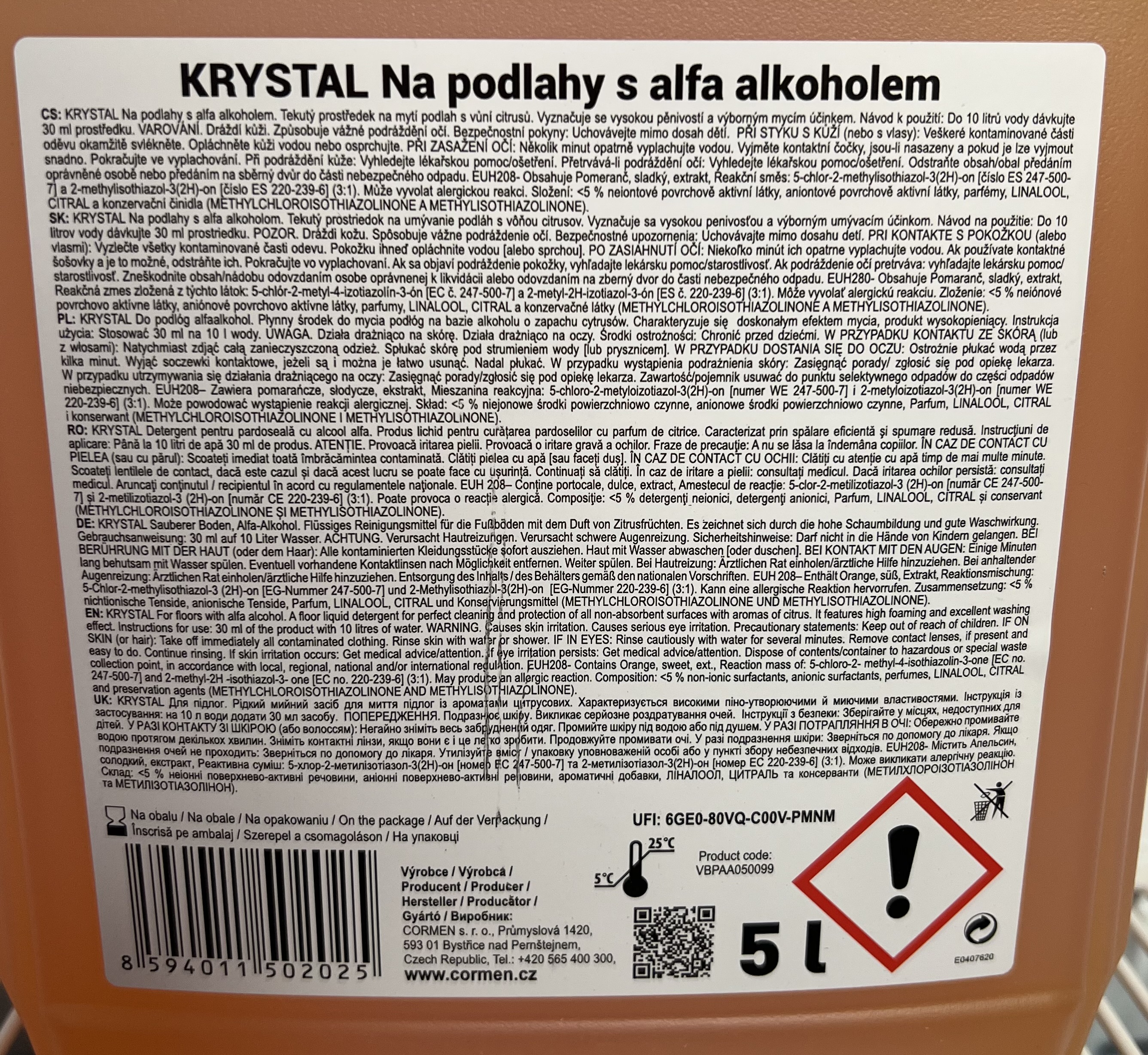 Krystal na podlahy s alfa alkoholom - tekutý čistiaci prostriedok na umývanie podláh s vôňou citrusov. Vyznačuje sa vynikajúcim umývacím účinkom.