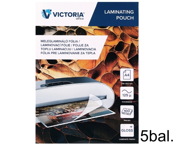 Laminovacia fólia VICTORIA OFFICE A4, 125 mikrónov, lesklá, laminovanie za tepla (100 ks) / 5 balenia / 1 kartón
