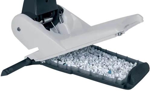 - Presné dierovanie vďaka bezpečnej vodiacej lište s ľahko čitateľným značením až do formátu A3