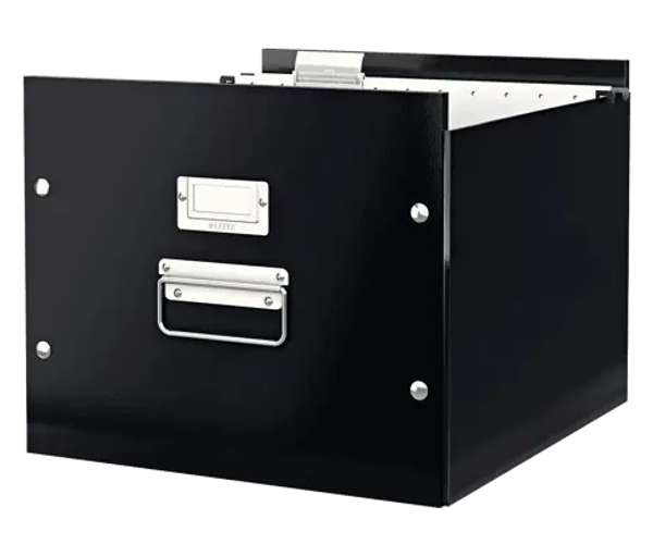 Skladacia úložná škatuľa Leitz WOW na CD a drobnosti, z pevného kartónu, laminovaný povrch, stohovateľná, so štítkom, ideálna na organizáciu v kancelárii aj doma.