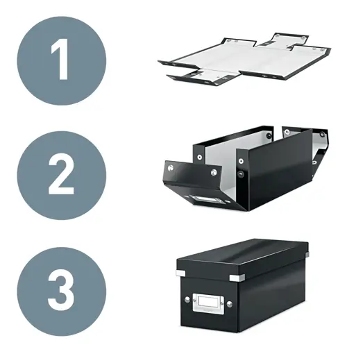 Univerzálny stredný úložný a transportný box pre dokumenty vo formáte A4. Vyrobený z pevného, prémiového kartónu z recyklovaných zdrojov s laminovaným povrchom a kovovými rohovými prvkami pre robustnú ochranu. Stabilné kovové rukoväte umožňujú jednoduché prenášanie a držiak na štítok uľahčuje indexovanie obsahu. Skladacia konštrukcia umožňuje úsporu miesta pri nepoužívaní. Moderný dizajn pôsobí skvele v každej kancelárii. Objem 16 litrov.