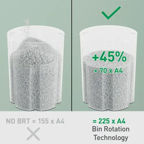 Skartovačka dokáže spracovať až 225 listov A4 pred nutnosťou vyprázdnenia koša