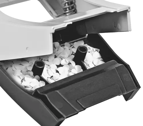 - Patentovaná rukoväť a ostré razníky pre zníženie sily potrebnej na dierovanie