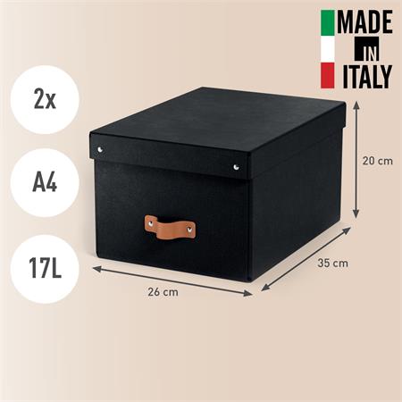 Boxy sú ideálne na uloženie dokumentov A4, 14" notebookov, hračiek, topánok alebo kreatívnych potrieb. Vďaka pevnej konštrukcii ich možno stohovať na seba, čím ušetríte miesto. Sú dodávané v plochom, plastu prostom balení, jednoducho a rýchlo sa skladajú bez potreby náradia.